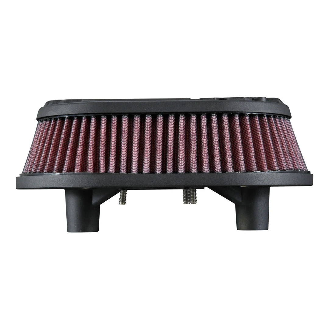 K&N Street Metal Air Intake Systems for Harley Davidson® motorcycles replace the restrictive stock OE air cleaner with an oversized K&N High-Flow Air Filter and a high-volume cast aluminum housing. If you’re looking for an aggressive appearance but want a significant increase in airflow, resulting in more power, this high-flow air intake system is exactly what your Harley needs. Installation is so simple, it can usually be done in 90 minutes or less. The K&N air filter is washable, reusable, pre-oiled and ready for installation. This intake system features an updated, modern look with an oval-shaped silver housing. Silver details and sanded fins further enhance the streamlined look. Internal breathers provide a sleek, clean appearance. This air intake has a classic styling with a savage appeal. These K&N air intakes are street legal in most states. They are not legal for use in California and other states adopting California emission standards.