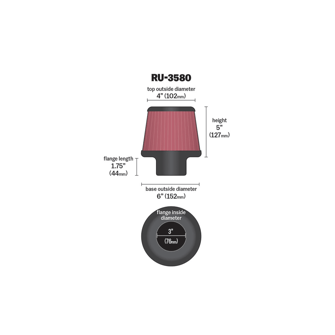 RU-3580 High-Flow Original Universal Air Filter – 3″FLG, 6″B, 4″T, 5″H